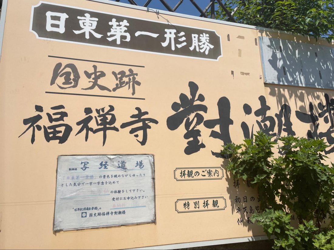Fukuzenji – Taichourou is a famous temple located near the port (and near the restaurant 鯛亭. Fukuzenji is said to have been built in around 950, and the Taichourou was added in around 1690. During the Edo period, it was used as guest houses for important visitors from abroad, especially from then cho-sen 朝鮮 (now, Korea). One officer from Chosen dubbed the Taichourou as 日東第一形勝 the most beautiful view from further east of Korea – 朝鮮より東で一番美しい景勝地 and today many tourists come over to see this specific view.