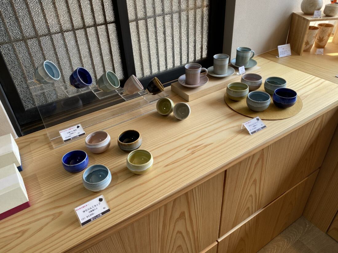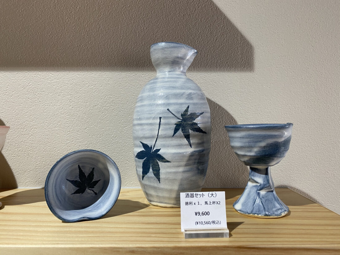 Despite not being able to join a pottery painting workshop, I learned a lot from my visit to Yamane Taigendo. Another story that the kind lady told me was about a sake set called Shuki Setto 「酒器セット」. It is inspired by what Japanese travelers use when drinking sake. Historically, Japanese travelers carry this with them to have a social drink every once in a while when traveling far and meeting new people. This set is composed of a Tokkuri「徳利」which serves as the pitcher for the sake. A pair of Bajouhai「馬上杯」or also known as a horse cup which is strategically designed for travelers to have a carry-on sake drinking cup strapped to their belts. It has a small hole on the base where you put a thread to tie on to a belt. While being respectful of its history, they also made sure to make quality products by giving it a sleek geometric stem that provides a good grip on the cup.