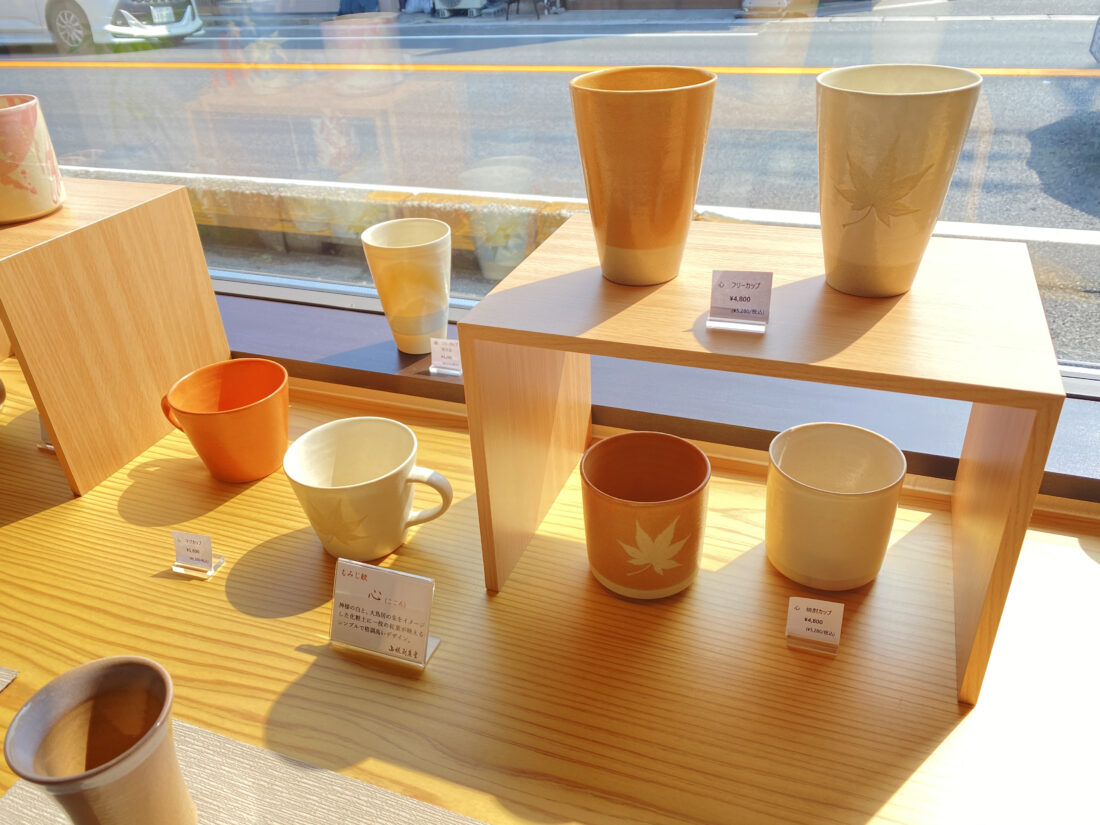 Yamane Taigendo is even more popular than I realized. On top of being fully booked for their pottery and painting sessions, they are famous for their handmade coffee cups designed in collaboration with Starbucks. More specifically, the only Starbucks coffee shop that sells this cup is found in Miyajima Island. It had maple leaf patterns and was made in a lovely cream and light yellow-orange color. It was called the Osunayaki mug. Because of its popularity and demand, they had to create a new and simpler design similar to the ones they sold at Starbucks just to accommodate those who couldn’t get their hands on those Starbucks x Yamane Taigendo cups. They called it a free cup, and they were really pretty too.