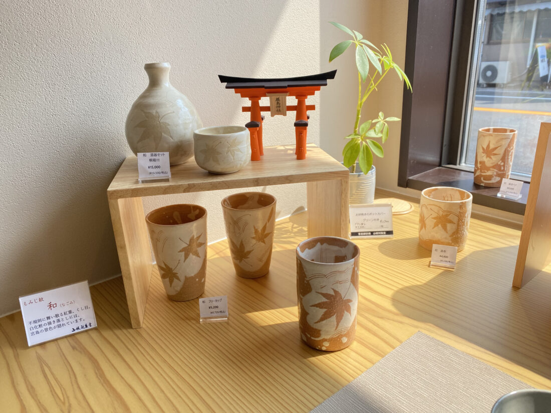 One of Yamane Taigendo’s specialties is using real Japanese maple leaves to paint and decorate their products. This was something I wanted to try and was really looking forward to. The closest I could get to the experience was when one of the store personnel approached me to tell me stories about their pottery instead. She told me about the story of Osuna, which I had previously mentioned that I read from their website. Even more interesting, she tells me that the sand they use is blessed from Itsukushima Shrine, making their products extra unique and special.
