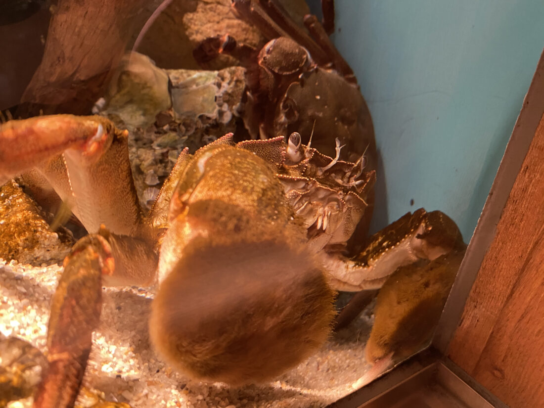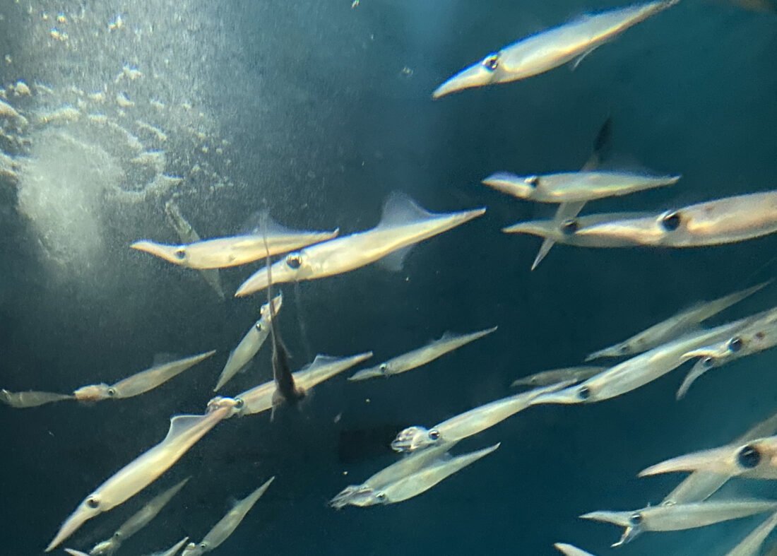 From there, they had small aquariums showcasing different crustaceans, such as the different species of crabs and lobsters. There was an octopus, too, that was hiding in a small pot and a couple of vibrant corals. There’s also one aquarium that was just full of squids swimming around and inking.