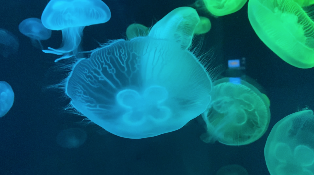 Then I walked into one of the big aquariums that were full of different fishes and manta rays. The manta rays were gracefully swimming around. They also had different types of sharks, big ones and small ones. The jellyfishes, on the other hand, are so enchanting to watch. It almost made me want to touch and play with them.