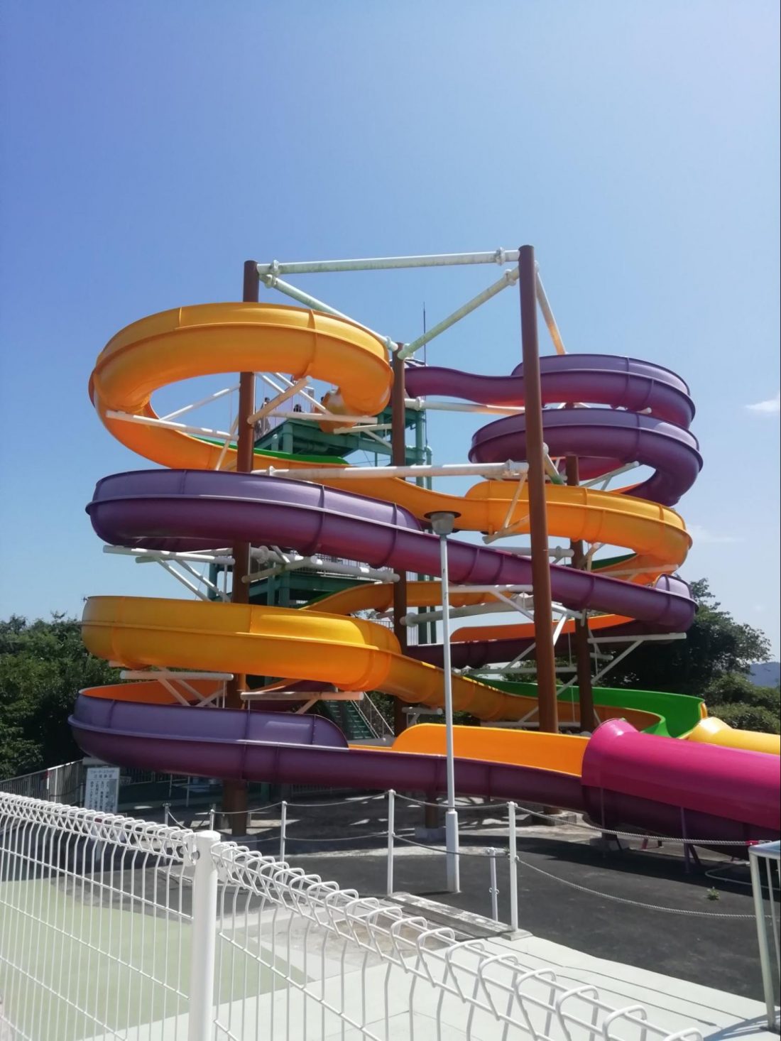 The water park, this year, was open from July 22nd to August 31st. Those dates will be roughly the same every year. It’s only open during children’s summer vacation. It’s open 9 a.m. to 4 p.m. weekdays, 8:30 to 5 on weekends. It costs 1800 yen (2000 yen weekends) for adults, 1400 (1600) for elementary school aged children, and 700 (900) yen for smaller children. The park also has rules about tattoos, and unaccompanied children to be aware of. You cannot bring your own tents or parasols, but they have tented pavilions and tables with parasols available for rent.