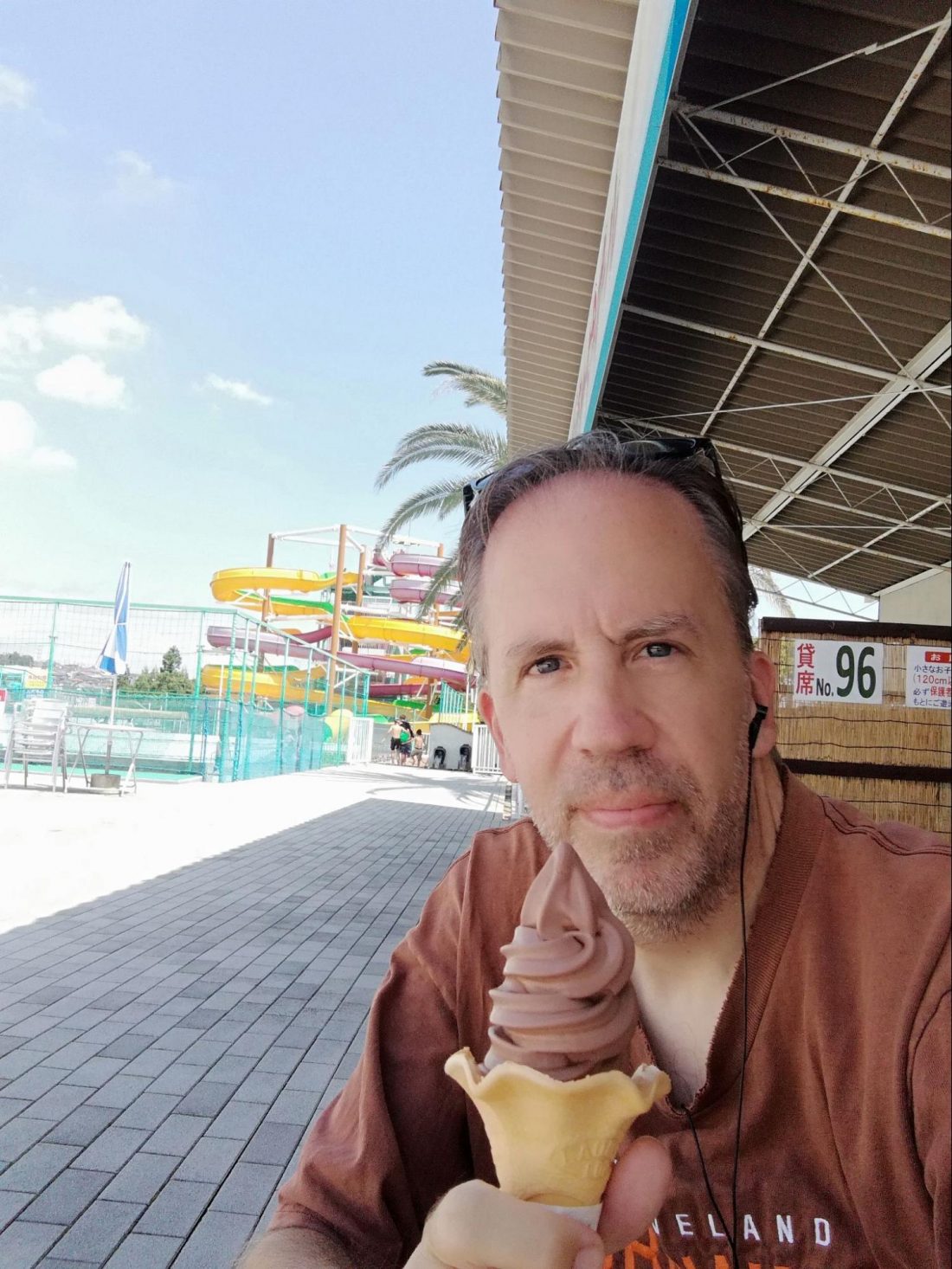 For me it’s all about the soft-serve ice cream, though. The day I was there they even had a special-of-the-day chocolate flavor. Sitting near the diamond pool, in sight of the water slides, eating a sweet, rich chocolate flavored ice cream… JOY