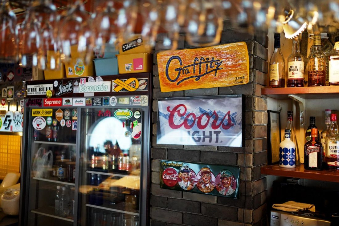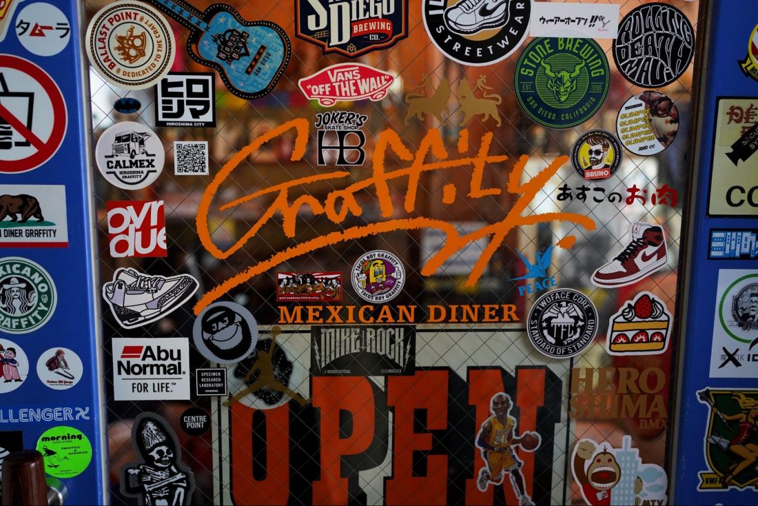 Graffity has a unique atmosphere for a restaurant in Japan. The walls are covered in graffiti and messages written by former patrons of the restaurant, which has included many foreigners over the past thirteen years that Graffity has been open. There are license plates from different American states mounted on the walls and counters, along with countless liquor bottles and Mexican knick-knacks. Stepping into Graffity feels as though you are being transported through a magical doorway that teleports you away from Hiroshima’s downtown straight to a Mexican bar and restaurant in the heart of San Diego.