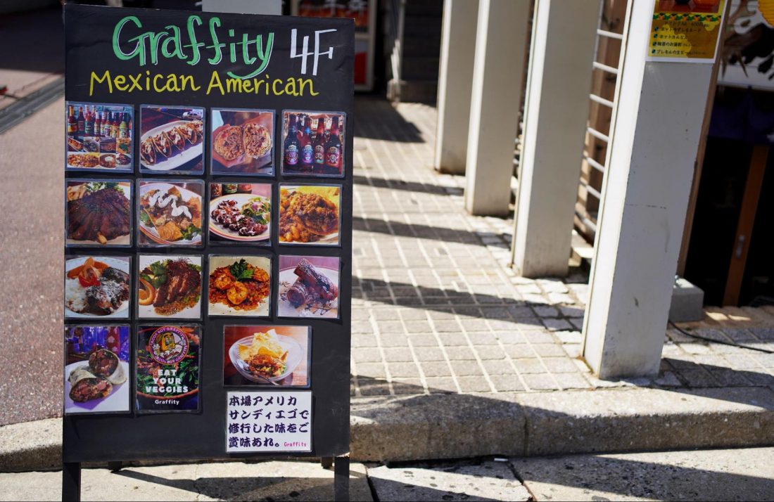 Together we hopped on the streetcar and headed back to Naka Ward downtown to check out Graffity Mexican Diner. This restaurant is an easy five-minute walk from Hondori streetcar station or about ten minutes from Kamiyacho-Higashi station. It’s just a bit south of the Hondori shopping street, so it’s also convenient to get to. The restaurant can be found in a small building that is somewhat unremarkable from the outside, but big signs out front will catch your attention and point you in the right direction. Take the elevator or stairs up to the fourth floor, and you’ll know you’ve found the right place right away.