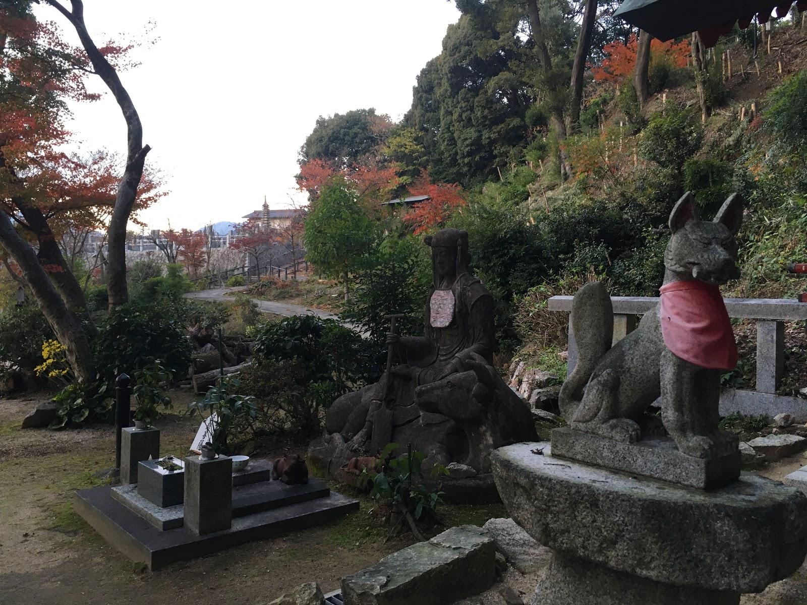 For those visitors who want to hedge their bets with the divine, there is a tiny shinto shrine with a row of colourful torii gates behind the smaller buddhist temple.