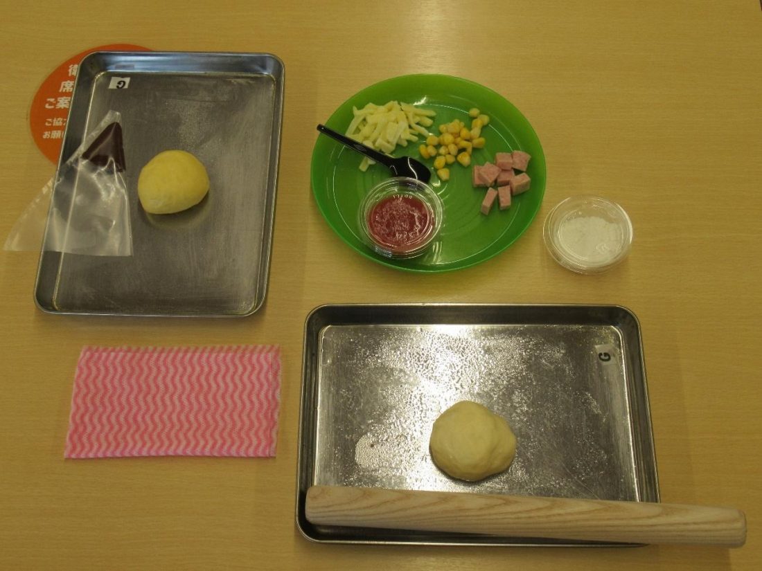 When I entered the workshop, I confirmed my reservation (done online, in Japanese) and found that everything I needed to craft my baked goods was already neatly arranged on a table. Hattendo provided me with two different kinds of dough, a chocolate icing pen, a cup of pizza sauce, a plastic spoon for scooping and spreading, shredded cheese, corn, spam cut into cubes, a rolling pin, and some flour used to coat the dough so it doesn’t stick to the table. Before touching anything, we first listened to our instructor explain and demonstrate how to knead dough. If you don’t understand Japanese, fret not; there are cartoons on a big whiteboard illustrating the three steps. After hearing the instructions, we got right to it, starting with the dough ball on the left, used to make our sweet bread.