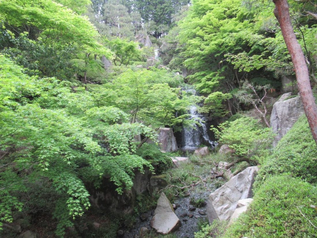 The next aspect that draws visitors’ attention will probably be the botanical element, and Sankeien certainly doesn’t hold back with its lush greenery and floral diversity. There are dedicated zones for select flowers like irises, peonies, and hydrangeas, but as I visited in early May, I was late to catch the former two in their peak, so barely any were left. As for the hydrangeas, they don’t quite flourish until June, so while there were some, I couldn’t find enough to take any noteworthy photos. It’s a good thing green leaves are around most of the year, and they sure compliment the waterfalls well. Sights such as these can be found at key bridges and other vantage points throughout the walking trails at Sankeien.