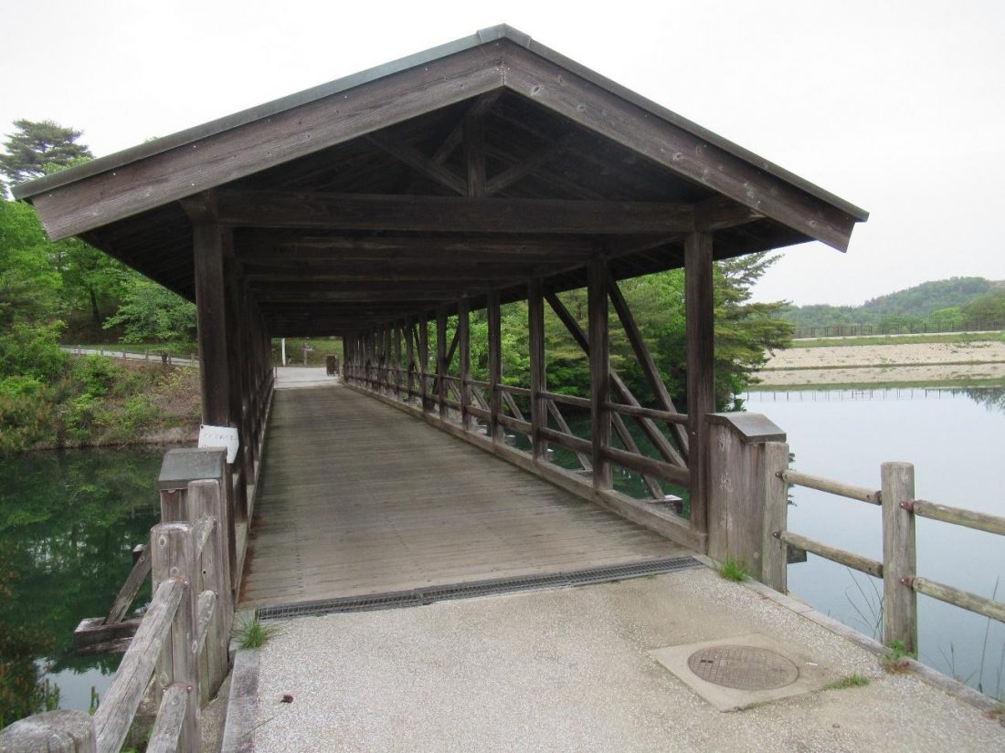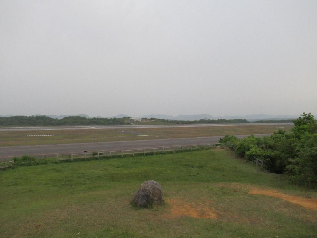 I began my expedition at this covered bridge that I could also see from within Sankeien. Naturally, as I walked across the bridge and looked to my left, I could see a section of Sankeien across the water, which was still and whose surface shone like a mirror. After crossing over, I turned right and hugged the edge of the reservoir as I trekked on. The trail took me over a small dam, past a public restroom, and by a spacious grassy area before delving into the forest. During this time, I could hear the deafening roar of an engine, letting me know I was fast approaching HIJ. I eventually came out of that opening on the right and ended up in some kind of hilly sanctuary that commanded a prime view of HIJ’s runway.