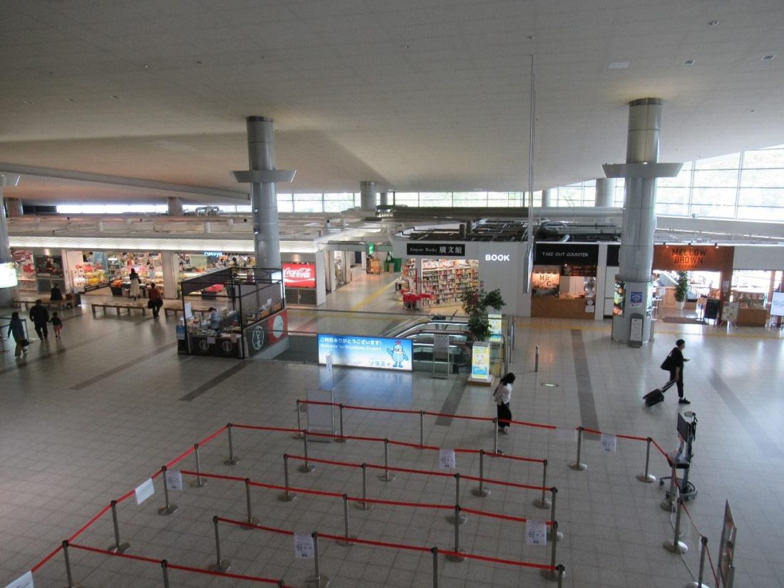 The first floor is what tourists see right after touching down at HIJ and coming out of the baggage claim. They have a tourist information center, rental car services, vending machines for bus tickets, a Family Mart, and a cafeteria-style restaurant. There are a couple of racks filled with brochures and flyers advertising a slew of places to visit and things to see all over Hiroshima Prefecture, and even a local such as myself can benefit from one of these guides, which can inspire me to take even more trips than I already do. I had no further business here, so I took the escalator to the second floor, where passengers check in for their domestic and international flights.