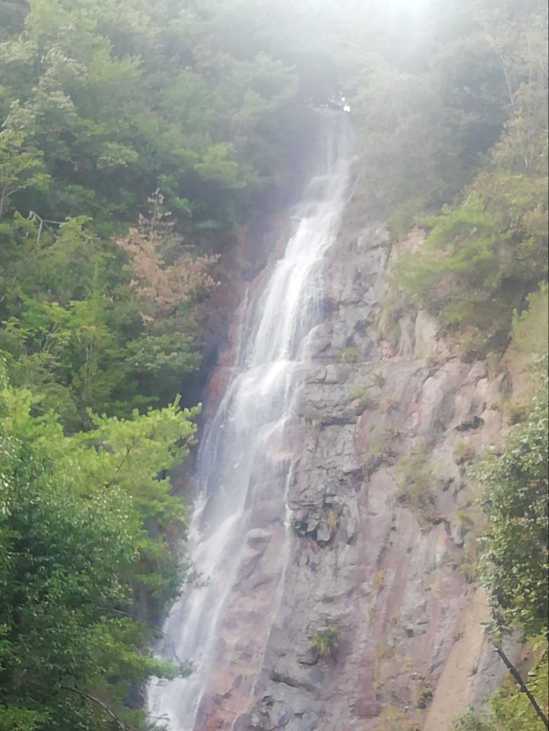 The falls are just behind Ogashira Shrine, which I’ll talk about more below. I was actually a little misled by the combination of a loosely-worded website and my Google map. The site I saw referenced a “short hike”, and my Google map showed “Imose Falls Park” as well up the hill behind the shrine. So when I first arrived at the shrine, I thought that was going to be something I’d check out quickly before moving on to the falls. However, I was pleasantly surprised to discover that Mendaki can actually be seen from the shrine itself. Completely unexpectedly I looked to my right and there “she” was.