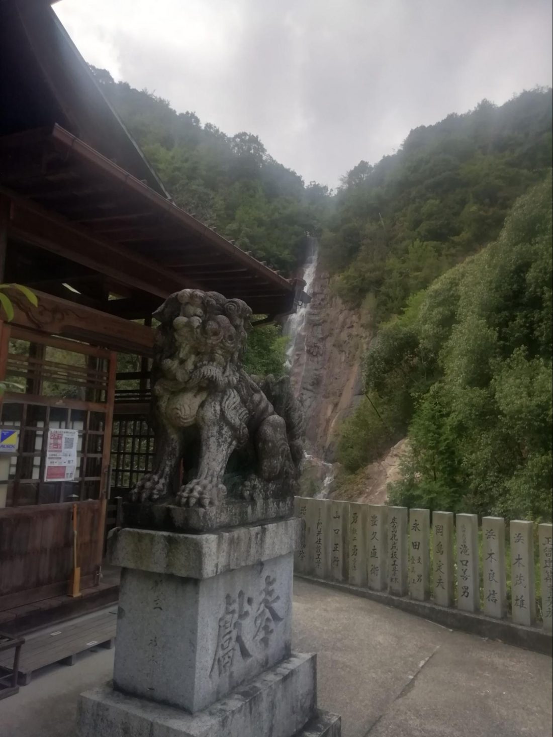 Imose Falls is really two distinct waterfalls, as mentioned above. For centuries they have been called the Meo (めお) Falls, with “me” for female and “o” for male. In shrine records, they are found written as 夫婦 (currently read “fuufu” but alternatively read “meo”, and meaning “married couple”) Falls, or the 雌雄 (currently read “shiyu” but also in the past read as “meo”, and meaning “male and female”) Falls. Around the early 1910s the current 妹背 “imose” name became official, but in fact “imose” is still just an older Japanese form of “fuufu” or couple. The “female” fall is officially named Mendaki. “She” is a 50-meter high, slender and elegant waterfall. The “male” is officially called Ondaki. “He” is 30-meters high, but has far more water dropping with more power. Now, again, before you complain of my stereotypes, I would like to remind you that I’m translating from the information on the official web page, as well as signs at the shrine to give you this information, so “slender” and “power” is not coming directly from me any more than male and female is. It’s the history of these falls. That said, you’ll see when you get there, the contrast between the two despite their nearness gives a lot more logic to the wording that just reading about it can supply.