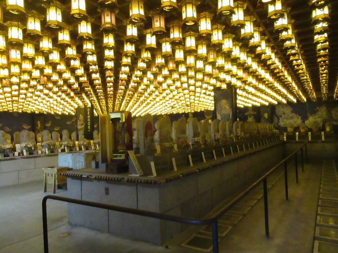 I eventually came upon a doorway, which is the entrance to Henjo Cave. Inside are probably over a hundred shining lanterns hanging from the ceiling and eighty-eight altars, each dedicated to a different Buddhist temple on the Shikoku pilgrimage. Legend has it that simply walking past all these altars–each of which contains a trace of its corresponding temple–is akin to visiting them all, saving worshipers a boatload of time and sanity. A visit here isn’t necessarily limited to walking the indicated path, as visitors are free to pray at any of the altars, or otherwise just repose and think deep thoughts in a tranquil place. Compared to the other parts of Daisho-in, this hole in the wall seems to not be frequented as often, so those interested in Japanese religion but don’t want to line up or crowd around will feel right at home in here.