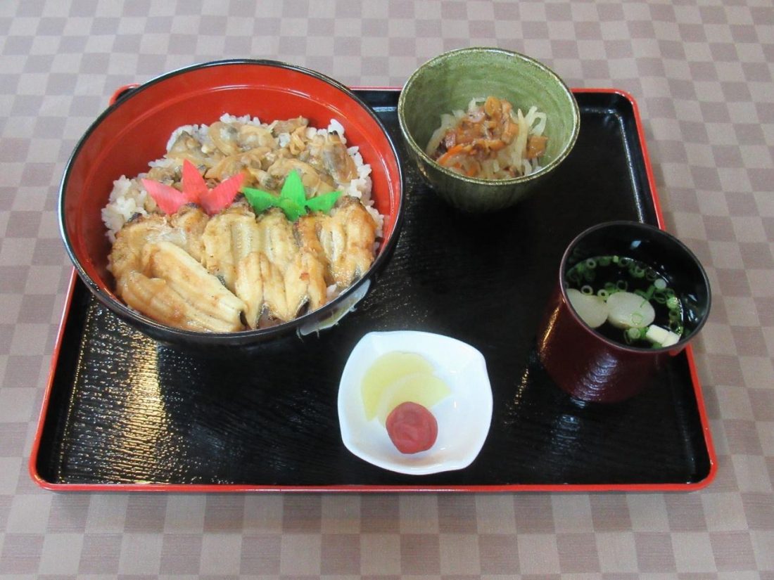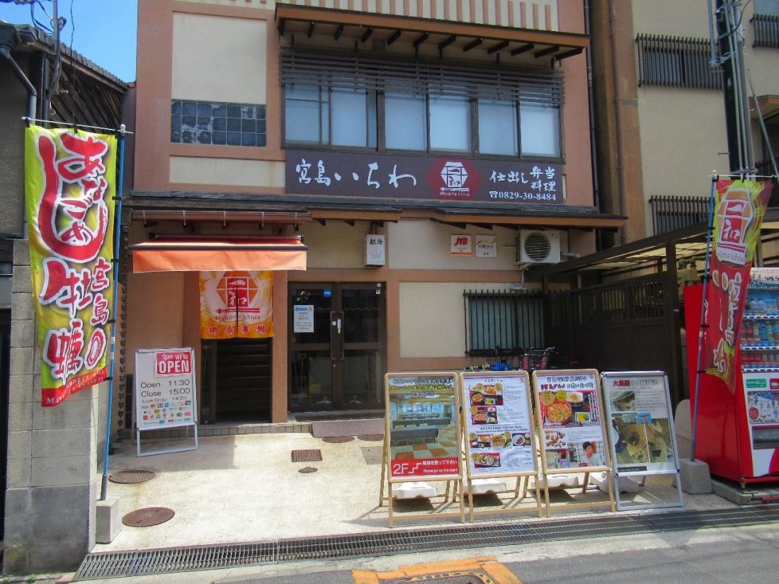 If you’re looking for a good place for lunch that’s a little off the beaten path, it’s worth checking out 宮島いちわ (Miyajima Ichiwa) for their signature dish: clam and conger eel rice bowls! As I exited the Miyajima Museum of History and Folklore, I made my way back to the exit of Itsukushima Shrine, from which it’s a short walk to the restaurant. First, I walked along the souvenir street behind the shrine until I came to a short bridge on my left. I crossed that bridge and continued on the dirt path, hugging the outer gate of Itsukushima on my left and eventually, I could see the restaurant 水羽 (Mizuha, another personal favorite) on my right and a five-storied pagoda off in the middle distance (as pictured above). Next, I went straight until I came upon a white tunnel, and entered it. I immediately turned right after coming out of the tunnel and kept walking down Machiya Street, then saw Miyajima Ichiwa on my right.