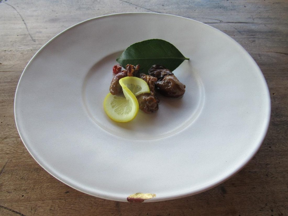 Although Kakiwai sells food, it’s not ideal to have lunch here, and even if you could make a lunch out of it, it’d be too expensive for my tastes. People typically come here for two things Kakiwai excels at: dessert and oysters pickled in oil, the latter of which can be purchased by the jar from their online store. I got myself a seat close to the window and started off with a plate of three of their oil oysters, served with a twisted slice of lemon and garnished with a leaf.