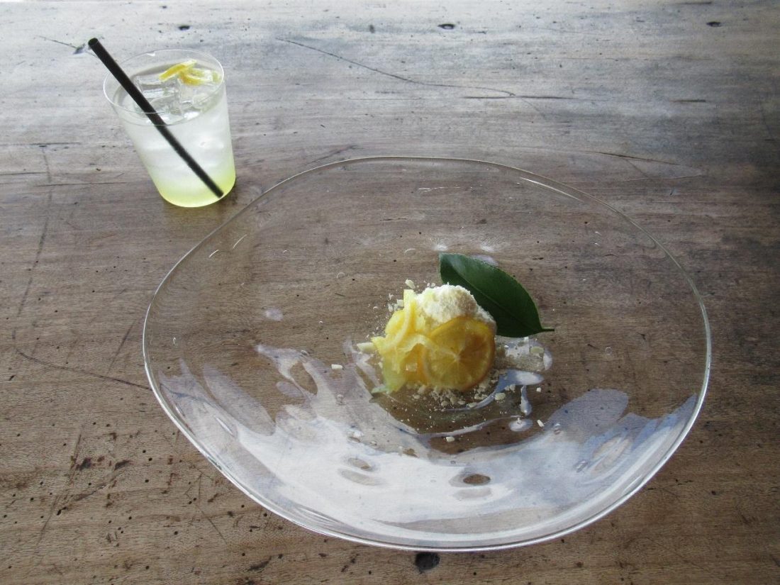 Not too long after I finished my oysters, the waitress took up my plate and served me my cake set: a lemon cheesecake with a glass of lemonade. The customer can also choose a chocolate cake or a different drink, like coffee or orange juice, but when in Hiroshima, eat all the lemons! My initial impression of the food was a fair amount of disappointment in the size of the cake; I forked over ¥1,100 for this!? However, once I dug in, I found the price to be slightly justified, also taking into account the lemonade, presentation, and setting. I’m normally not much of a cheesecake person, and I prefer to use the crust to counter the subtle cheese taste, but this cheesecake was entirely devoid of crust, featuring only fluffy, lemony fresh cheese. Fortunately, the lemon flavor drowned out the cheese flavor, and my favorite part was the candied lemon slices that topped the cheesecake, with sweet, edible peels. Meanwhile, the lemonade provided a gentle sweetness and a strong lemon zest that wasn’t sour at all. It was delicious, but as a person who prefers sour lemonade, this glass left me wanting something with more citrus tang.