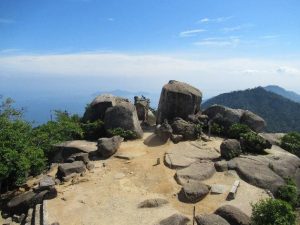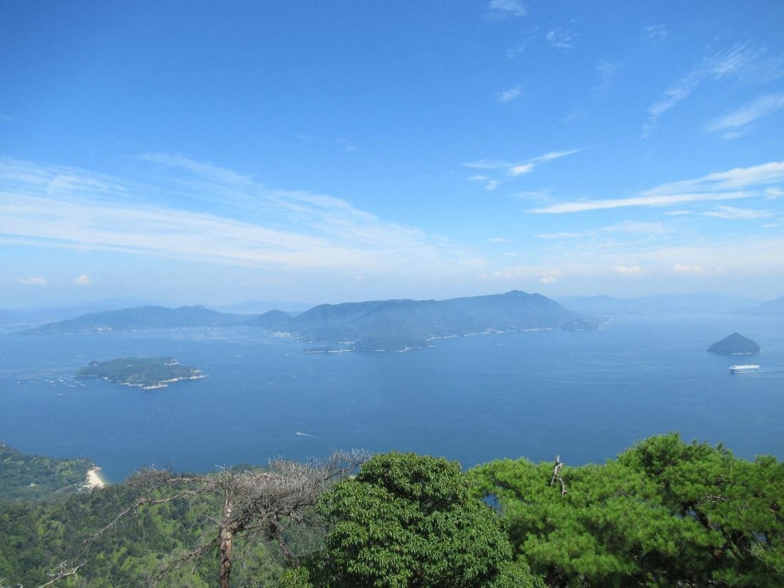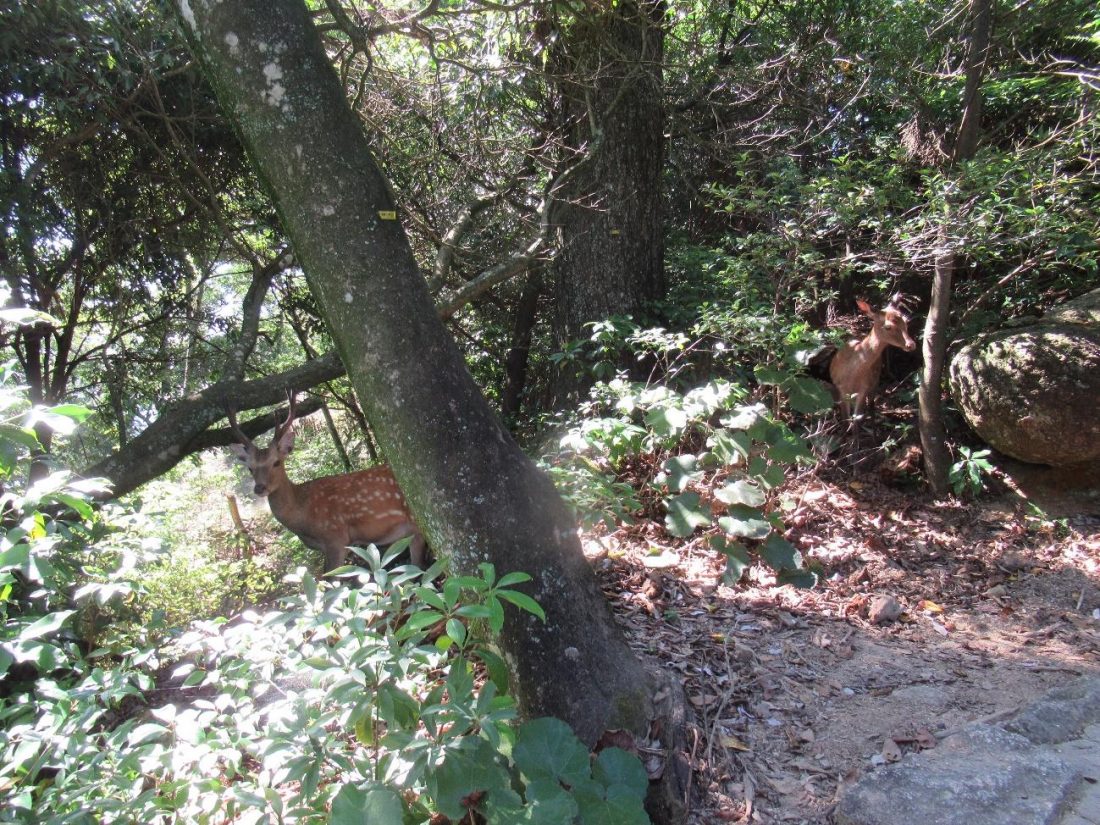 As I got closer to the summit, a buck caught me off guard, and I greeted the resident deer before reaching the end of the journey, the Misen Observation Deck. This terminal rest stop has two levels from which hikers can gaze in awe in all directions, with scenes including the boulder plaza right outside the observation deck, Shishi-iwa Station from whence many hikers came, various islands in the Seto Inland Sea, and depending on the level of foliage, even the floating torii of Itsukushima Shrine! There’s only standing space on the top level, but the mid-level is loaded with spacious benches where weary travelers can sit or even sprawl (with shoes off) to recover from their blazing ordeal. I myself lay on a bench for quite a while, tossing and turning, hoping for my sweat to at least partially dry, before making my way back to Shishi-Iwa and riding back into town. The observation deck on the summit closes at 4:00 p.m., so try not to wait too long before hiking. Also worth mentioning is that there are three different hiking trails one can take from sea level directly to the summit, completely foregoing the ropeway, but I’d try those in spring or autumn if I were you.