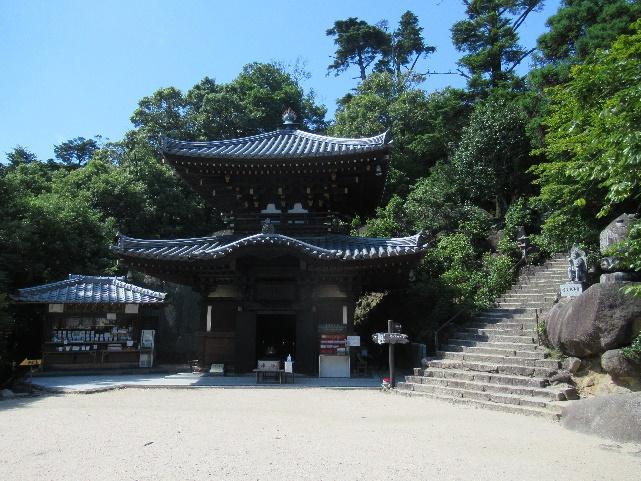If you’re looking for a more hole-in-the-wall place to relax, might I recommend a literal hole in the wall? Follow the signs in town to a temple called Daisho-in, a Buddhist temple at the base of Misen with a hiking trail right beside it. Upon entering the main gate, you’ll be greeted by a long staircase with a special railing in the middle. This railing sports wheels with Buddhist sutras inscribed on it; if one spins all the wheels while climbing the stairs, it’s said to be equivalent to reading them all. Along the way and after reaching the top, there are many grand buildings to visit and interesting statues to see, but the hole in the wall is call Henjo Cave, which is located near the back of the temple grounds.