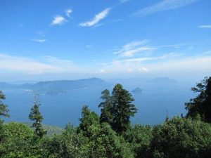 This terminal is about a half-hour hike from the summit, and features numerous vending machines, a restaurant upstairs, and an outdoor observatory where one can gaze out towards tiny islands in the Seto Inland Sea, and also spot Kayatani Station among the forest below. There’s also a place in the building where couples can take part in an experience making heart-shaped Momiji Manju, but this single guy’s got no business there. I took in the view from the Shishi-iwa Observatory, then saddled up for the summit.