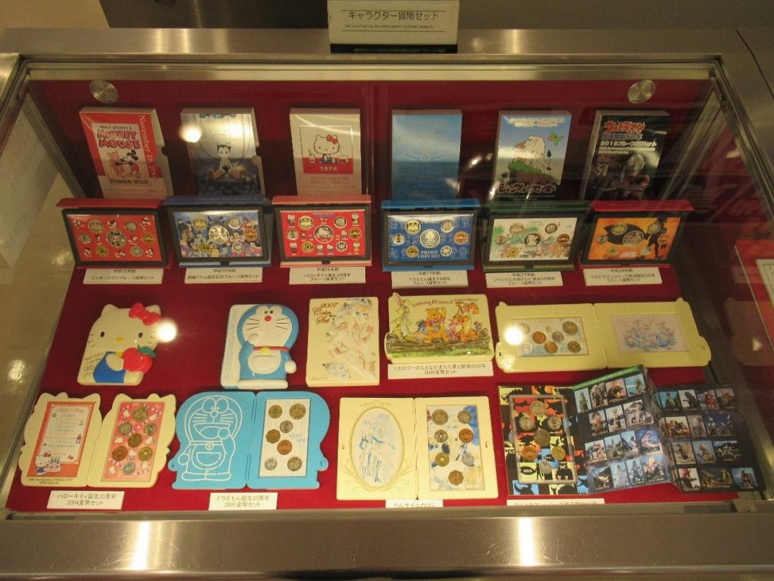 The exhibit covers the history of minting coins as well as various products struck by the Japan Mint over its 150-year lifespan. They have money from ancient China, old variations of the Japanese yen, and miscellaneous metallic goods such as silver bowls and medals awarded to outstanding individuals. One case was even dedicated to special edition coin sets featuring cartoon characters.