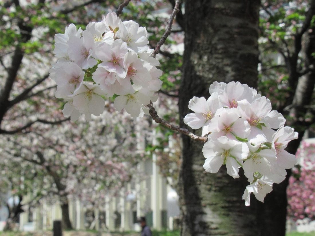 Unfortunately, I was five days early for the Sakura Detour, so these pictures from the outside are the best I can do today. Thanks to my camera’s zoom I was able to snap some detailed pics without even going in. As you can see, however, sakura season is drawing to a close as the petals are slowly being replaced by green leaves, and I can only hope that there will still be a substantial number of flowers next week.