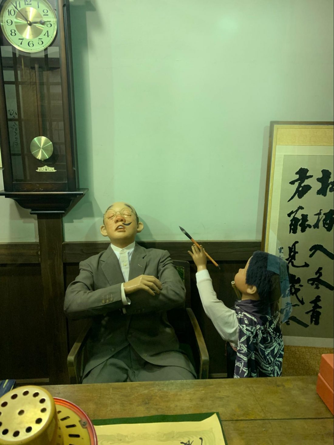 As I stepped in further, the scene then quickly changed into the inside of an old primary school. Here was where I met the first two mannequins of the headmaster sleeping and a young student drawing on his face.