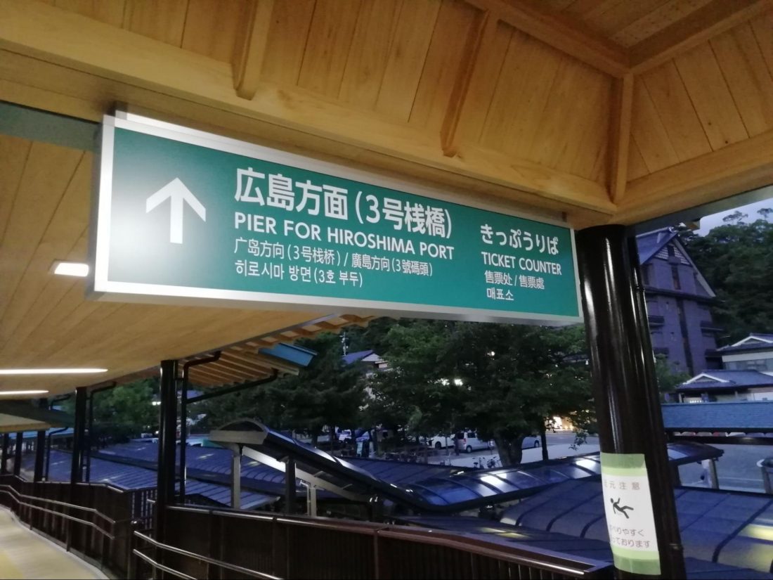 It’s mildly tricky to find the boat when it is time for your cruise. You are told that the boat will leave from Pier 3, but the majority of maps of Miyajima that I have seen make no reference to a Pier 3. Getting off the ferry from the mainland it is still very easy to miss the Pier 3 sign, because it is off to the left, and rather small. It’s a case of being obvious if you know where to look for it, and obscure if you don’t already know. So let’s bring you in the know. The JR ferry uses Pier One, while the rival Matsudai ferry uses Pier 2. As these both empty into the same building it’s easy to not be aware of the whole “1” and “2” part of it. Just as you exit this ferry terminal building, look immediately to your left and you’ll see a sign in green that makes reference to Pier 3.