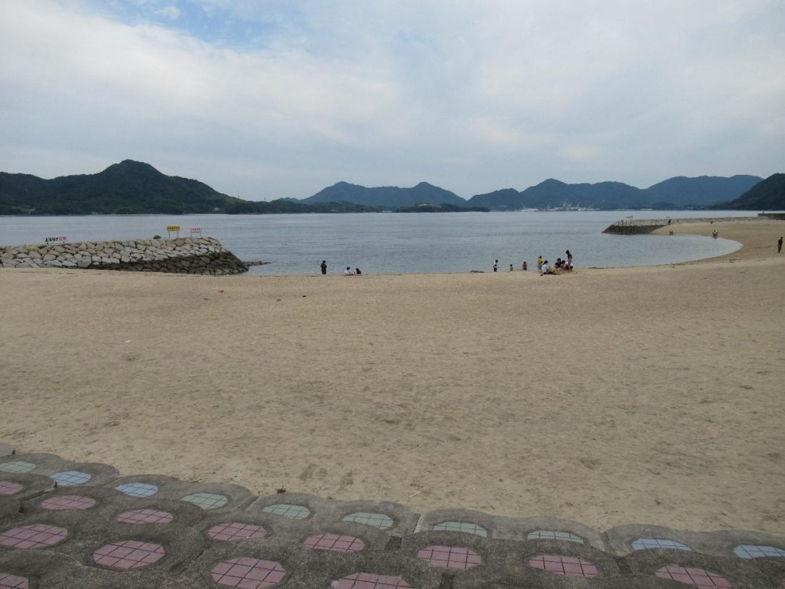 I had had my fill of mountains for the day, but barely toured the coast, so I saddled up and made the journey back over Mt. Fudekage back to Sunami Port. The weather was lovely but scorching hot in early June, which meant I had to stop here and there to refresh myself with ice cream and soft drinks in order to keep going. After descending from the mountain (using the correct path this time), I made my way south towards Mihara City Sunami Seaside Park, which is perhaps the highlight of this area, at least at sea level. It takes twenty-something minutes to reach this public beach on foot, but at this point in the day it felt like forever. Having effectively hiked Mt. Fudekage twice, I was developing blisters in my feet, and my legs were so exhausted I was walking with a limp. I breathed a sigh of relief when I finally made it to my last stop of the day.