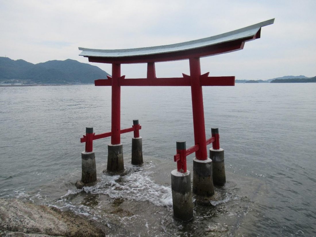 That wouldn’t be the only mistake I’d made today, but before my next mishap, I first approached the Seto Inland Sea to watch the waves lick the seawall. It was high tide when I arrived early in the morning, and at one point along the road the water was splashing high enough to spill into the street. As I looked down to photograph the waves, I actually got some seawater on my shirt, but a phenomenal photo by which to remember it. I continued north until I reached the first tourist site on my list.