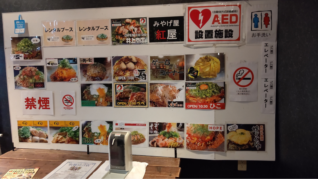 What makes Ekimae Hiroba special is, firstly, it’s close proximity to Hiroshima Station, it is in a building right across the street from the Station’s south exit. Secondly, it has over a dozen okonomiyaki shops side by side for you to choose from. Every okonomiyaki shop has its own story and its own creative contribution to this classic Hiroshima dish. Check out their website below if you want to look at all of the different okonomiyaki shops before you go.