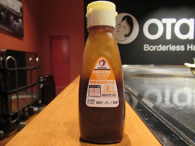 The only thing left was to add the sauces and garnishes to enhance the flavor and presentability of our okonomiyaki. In addition to organic Otafuku sauce, vegetarian diners are also given a bottle of pineapple-flavored non-egg mayonnaise, which can be enjoyed by ages one and up. Once I covered my okonomiyaki with organic Otafuku sauce, drizzled on the non-egg mayo, and sprinkled on some green seaweed flakes, my masterpiece was complete and ready to eat!
