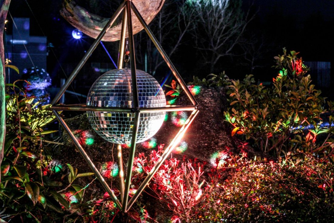 The main event was at the center of the park. A beautiful arc and enchanting music will welcome you to their fantasy displays. There were huge disco balls along the path that were beautifully lit by spotlights. At the center aisle, colorful lanterns and smaller disco balls gave life to a serene garden pathway, offering a trance-like illusion to curious visitors. And by the end of the path is a geometrical dome shining at the center, surrounded by smaller domes lit by colorful lighting patterns.