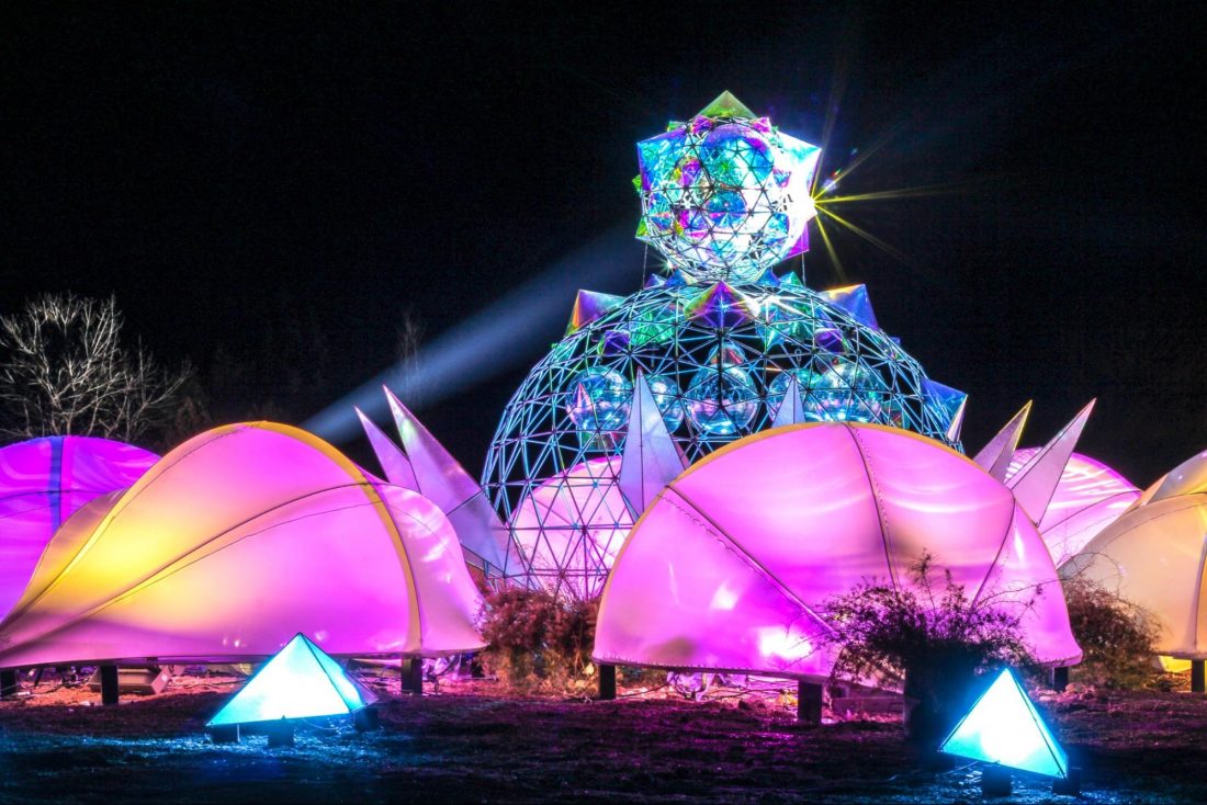 The main event was at the center of the park. A beautiful arc and enchanting music will welcome you to their fantasy displays. There were huge disco balls along the path that were beautifully lit by spotlights. At the center aisle, colorful lanterns and smaller disco balls gave life to a serene garden pathway, offering a trance-like illusion to curious visitors. And by the end of the path is a geometrical dome shining at the center, surrounded by smaller domes lit by colorful lighting patterns.