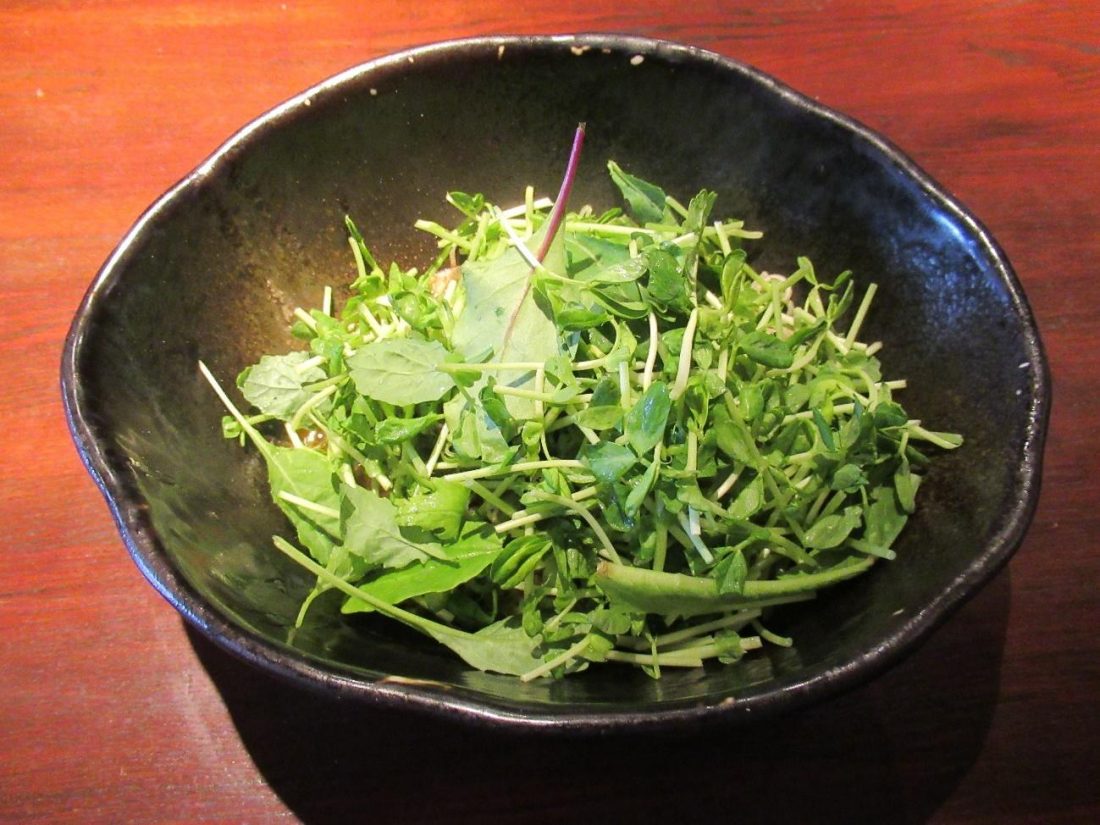 Customers entering the store will first order from a vending machine and present their tickets to the chef before sitting down. They have several versions of shirunashi tantan-men with different kinds of toppings, so my health-conscious self went for a bowl with a mound of veggies on top. When my food was served, I couldn’t even see the noodles beneath all the leaves, so I got straight to mixing. I knew it would look and taste a lot better after the flavor was uniformly distributed across the noodles and salad.