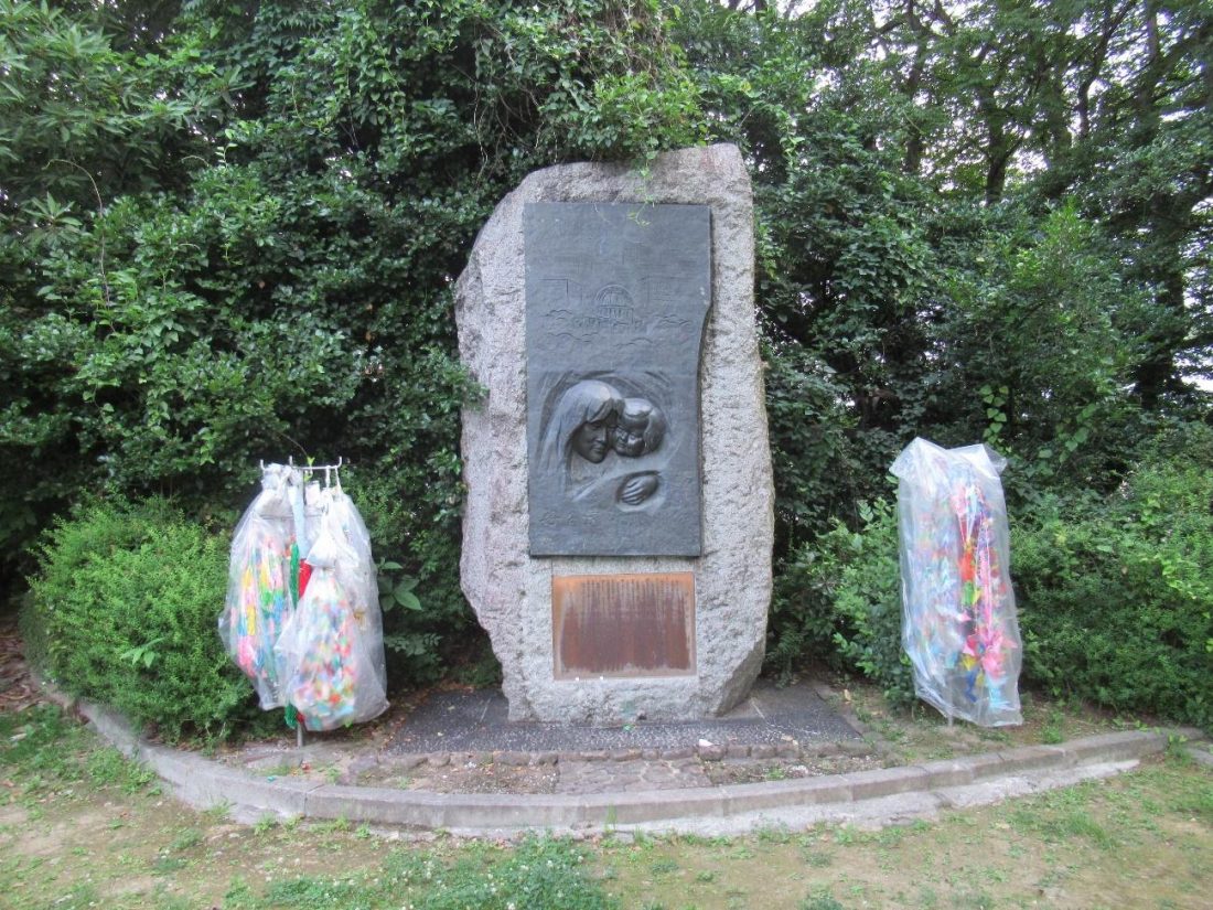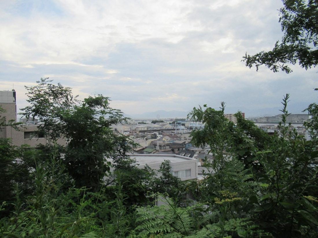 When I was approaching approaching Youki, I was met by a white sign pointing to the Ebayama Museum of Meteorology. I decided to walk off my dinner by going up that path to Ebayama Park, which is situated on the same hill that the tunnel from before cuts through. Ebayama Park is fit for a post-meal stroll, as the grounds are spacious and the incline isn’t as steep as other hills in the city. They have some interesting works of art, like this mother-and-child carving and public restrooms that look like they came out of some medieval fantasy world. Past this sculpture is a lookout point where one can gaze towards the Marina Hop, where the naked eye can still make out its Ferris wheel and docked boats in the distance. There are several benches here, so it makes for an ideal relaxation spot whether one is traveling alone or as a group.