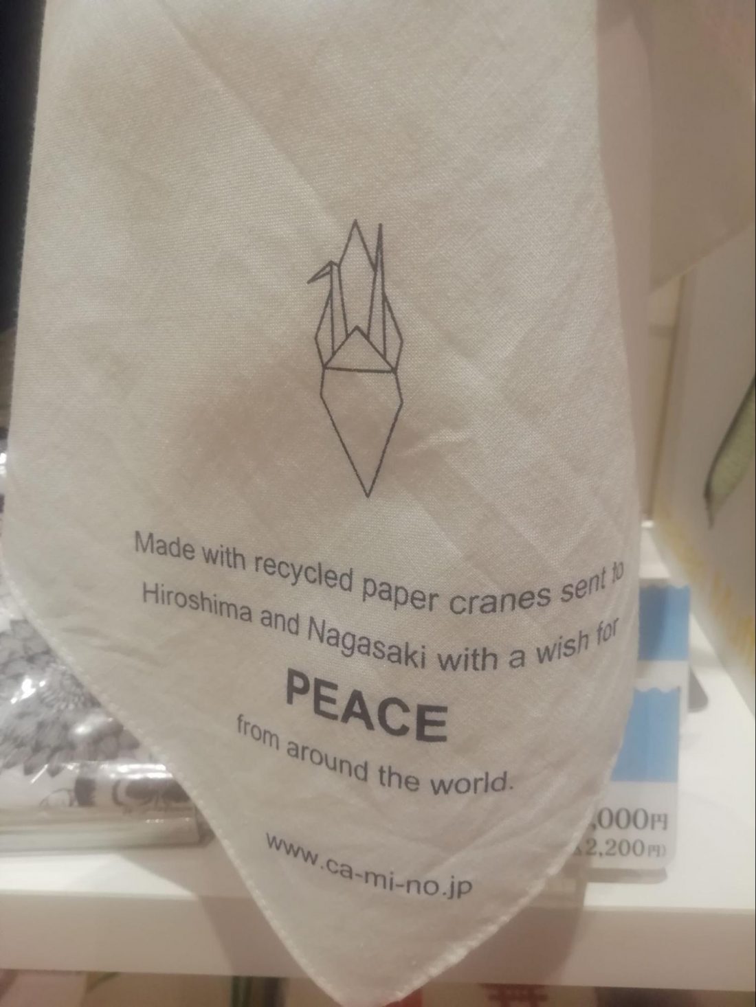 The paper cranes seem to have become the major souvenir item away from Miyajima and the Torii, both in design and recycled form. I was quite surprised and pleased to find items that were made from recycled paper cranes that had previously been on display at the Children’s Monument and such in the Peace Park. As they get new cranes consistently, eventually some donations are cycle out. But now some are recycled into beautiful scarves, notebooks, and a variety of other goods. This is a very cool and unique gift idea. You’ll also simply find the paper crane sketch makes an elegant gift design. There were some elegant earrings and necklaces made with paper crane shapes that were quite lovely. The paper crane wind chimes were also especially nice.