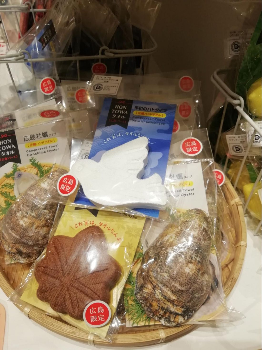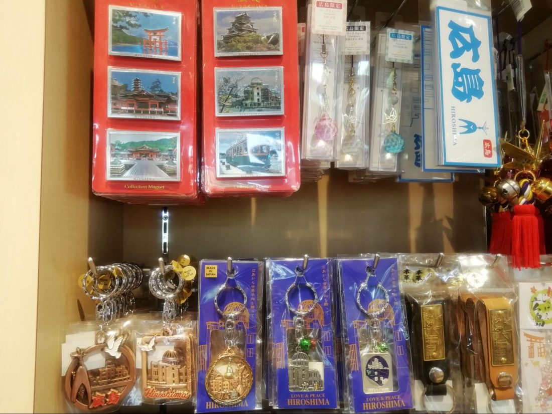 So what to buy and where to buy it? For Japanese people it’s simple. Inside Hiroshima station (and every major or tourist destination station) you’ll find a line of people buying various cookies and snacks in boxes marked with locations around town and area. They buy them just before getting on the bullet train for home. Simple and easy – but gone in an instant after you’re back home and soon forgotten. Meanwhile, nearly every tourist guide I looked at follows the traditional line (likely influenced by the sellers themselves) – special ceramics Hiroshima is known for (expensive and hard to pack in a suitcase), or perishable goods Hiroshima is known for like lemons and okonomiyaki sauce. But I’ve been a tourist. You’re most likely looking for those T-shirts. Or refrigerator magnets. Or little knick-knacks for your shelf or to pass out when you get back. Something that actually says “Hiroshima” on it, or at least Japan, that can become a lifelong treasure and memory, no matter how kitschy.
