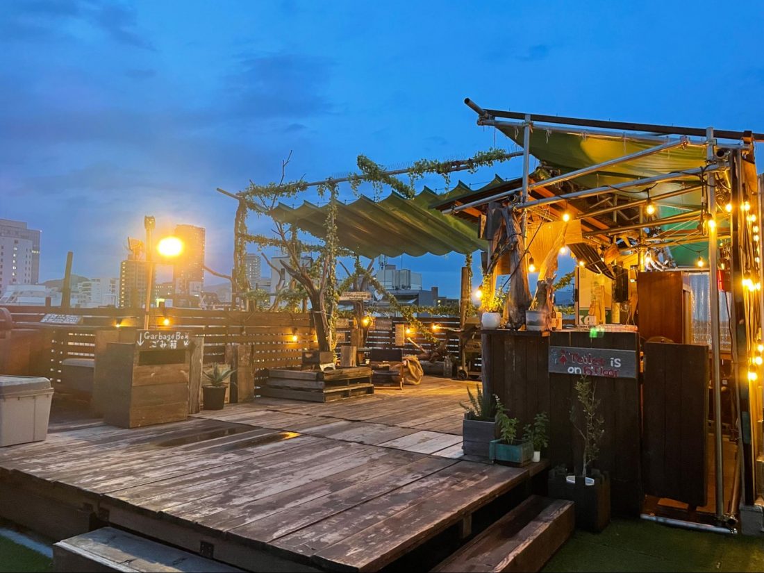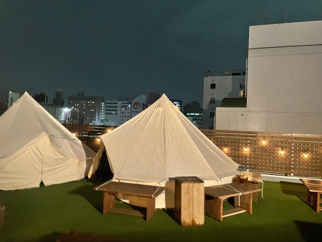 I genuinely found out about this place when I was desperately looking around for somewhere I could grab drinks and food outside (like a rooftop bar), after having been cooped up inside all day. The name of the place was called “Street Base Camp”, with the description of “a camping style, roof top bar”, which immediately caught my attention. Hiroshima is pretty well known for having a lot of open terrace seats at restaurants but I’d genuinely never heard of “a camping style, roof top bar” and I quickly set up a date to visit this new found location.