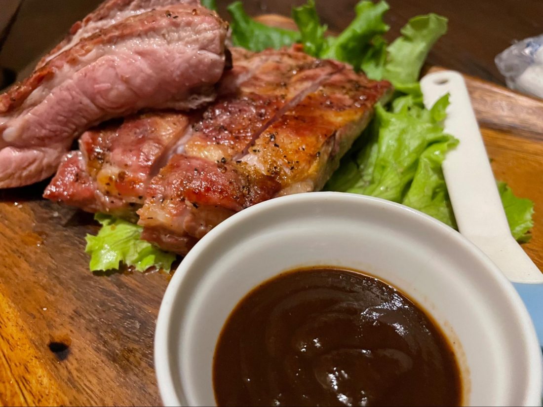 Next, the ribs. The ribs were also much more in amount than I’d expected and I struggled to get through to the end. It came with a barbecue sauce, but because there was enough taste on its own, I ended up enjoying most of it without the sauce.