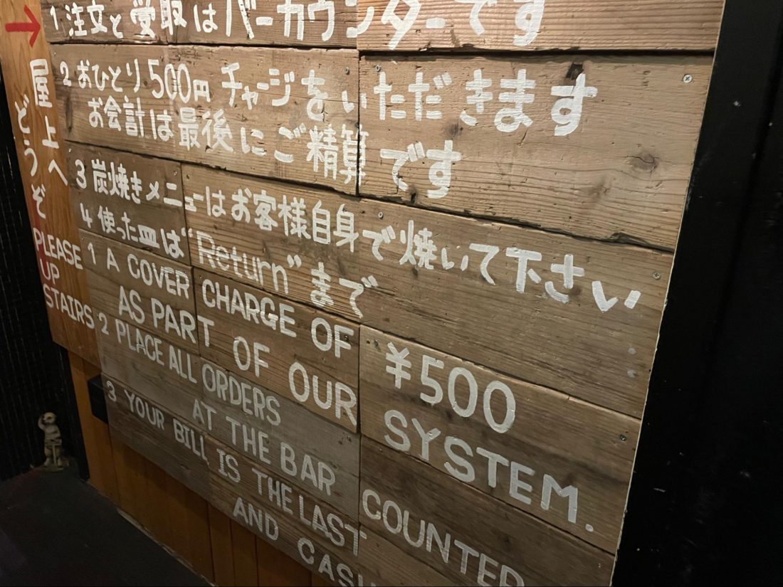 ② お一人500円チャージをいただきます (There is a cover fee of 500 yen)