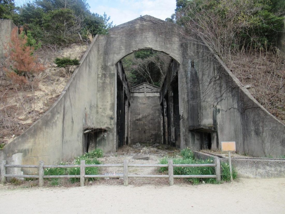 Besides the rabbits, the entire island itself is a tourist attraction, filled with lush nature and intriguing ruins waiting to be found. South of the ferry pier are the poison gas museum and the Kyukamura Okunoshima resort where one can overnight and witness the rabbits frolicking at night or early in the morning. North of the pier are the power plant ruins and the northern cannon battery remnants, among other sites relating to Okunoshima’s war history. In the center of the island is a hill with an observation deck, but because it was closed on the day I went I couldn’t get my Seto Inland Sea panorama pictures. The whole island can be circumnavigated in less than two hours, so even if you skip all of the facilities like I did, Okunoshima makes for a great nature hike frequently occasionally interrupted by fascinating historical tidbits.