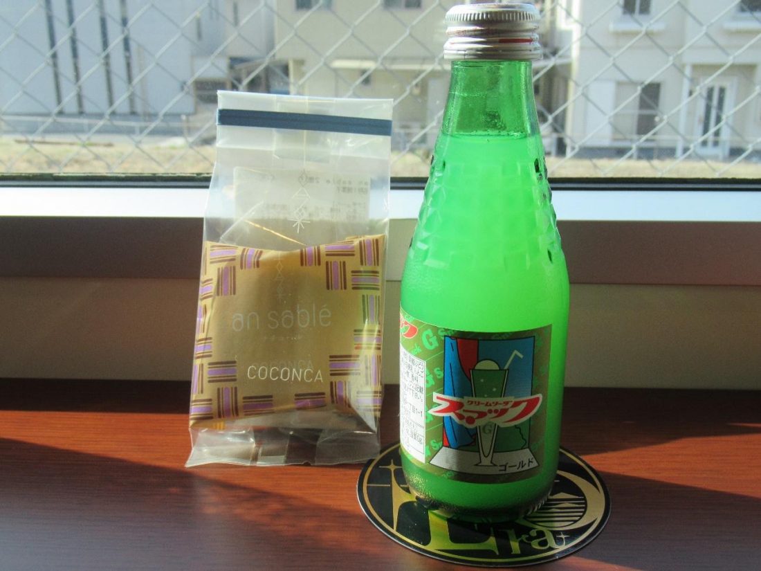 It didn’t take long for me to be awestruck by the views I was afforded on the way to Takehara. Naturally, I entertained the idea of ordering food and drink to compliment this splendid view, and having a lady push the snack cart throughout the two train cars facilitated the process. When reserving a ticket for the etSETOra, it is possible to reserve a blue or white premium dessert box for a supplementary fee to be delivered to your seat during the journey, but I forewent that option in favor of selecting my snacks ad lib on the day of my journey. I picked a couple of azuki bean paste Sablé sandwich cookies and a tiny bottle of melon cream soda to wash it all down. During the ride, all passengers were also given a commemorative coaster as a souvenir; it completed the spread I needed to enjoy the rest of my ride.