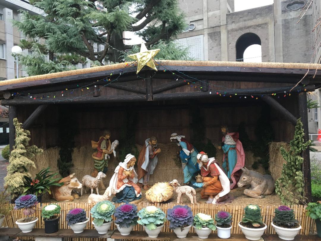 In contrast, the garden served to soften this impression. There was a cute nativity scene in place, as we visited around Christmas time.