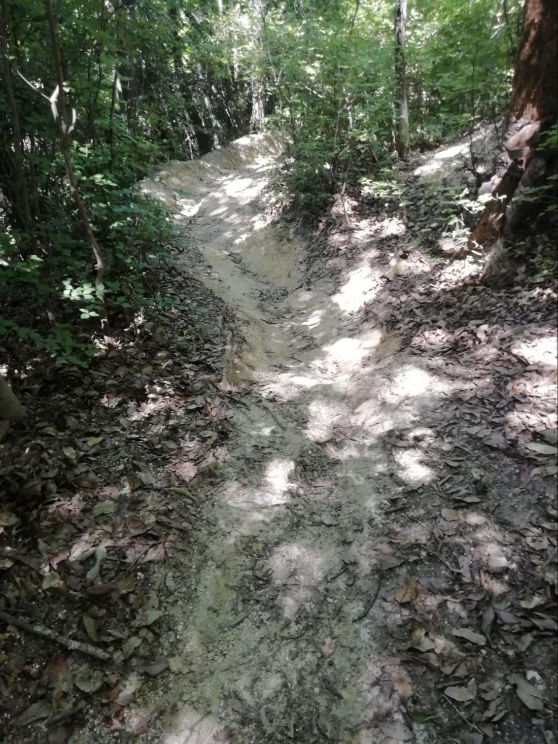 Much of the path, by the way, seems to have been formed by rainwater. When I wasn’t fantasizing about the past, I was having a chicken-and-egg debate with myself. Did frequent rains wear out a path over centuries that we humans have adapted for a trail? Or did human feet wear out a trail that rain now follows as a path of least resistance. Hmm.